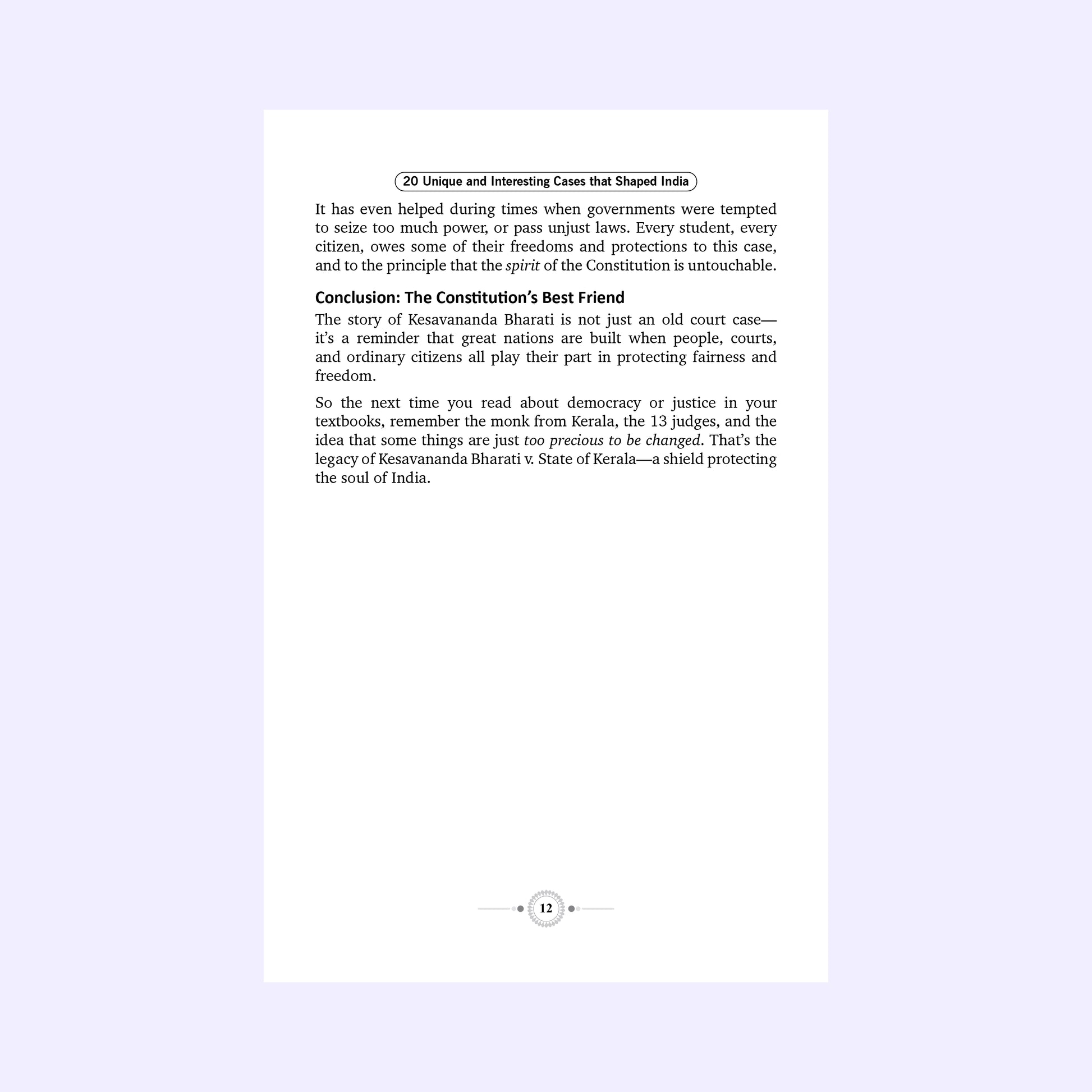 20 Unique and Interesting Cases That Shaped India explores landmark Supreme Court judgments that have shaped India’s constitutional and democratic framework. Written in a simple, story-driven style, the book makes complex legal cases easy and engaging to understand.