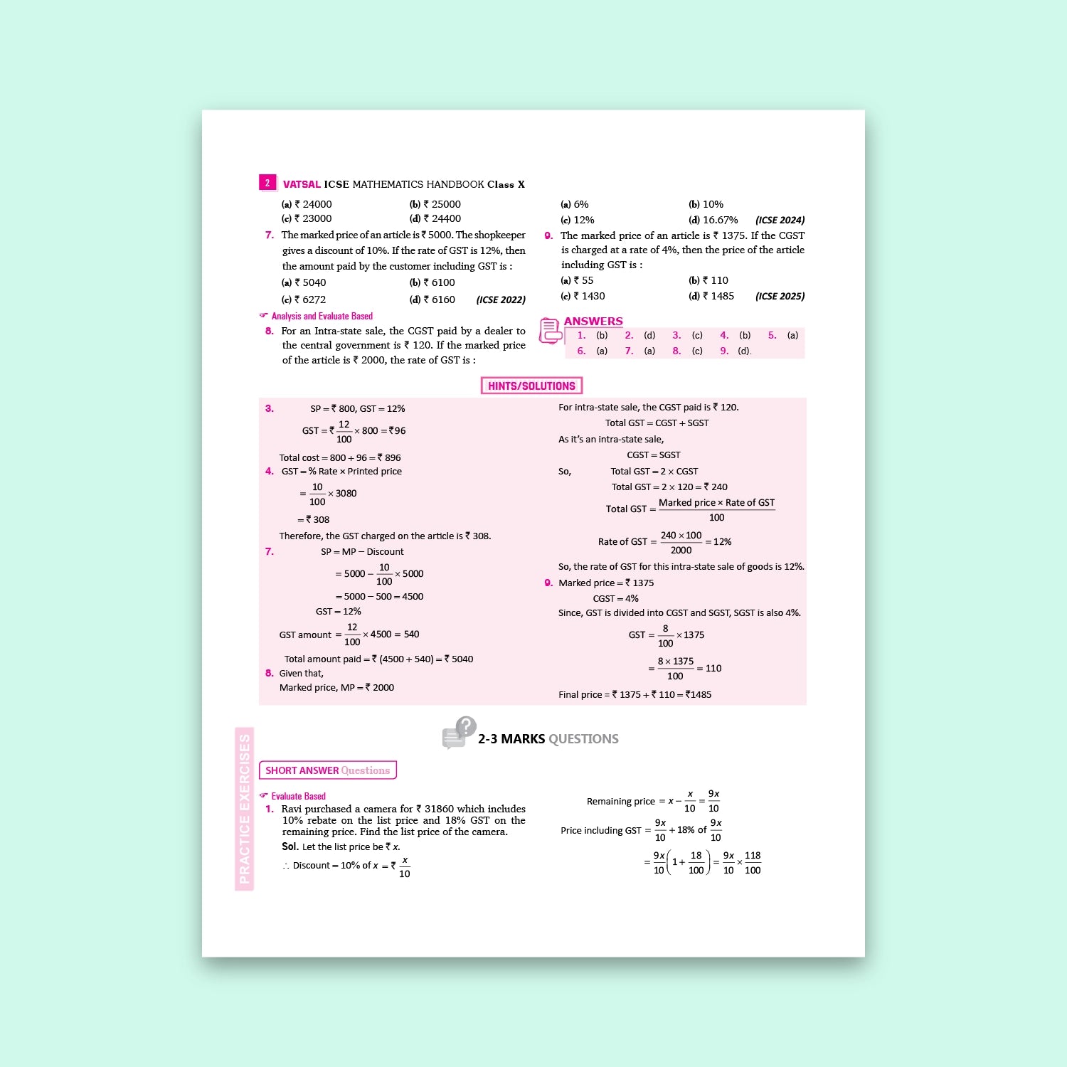 Vatsal ICSE Handbook Mathematics Class 10th for Board Exam 2026 - Nageen Prakashan